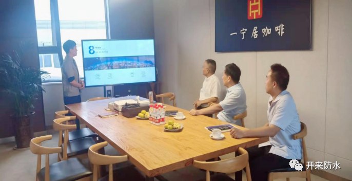 王洋云經(jīng)理匯報了開來濕克威企業(yè)文化、開來、濕克威、樂活、一寧四大品牌、16大特色產(chǎn)品及國內(nèi)外典型工程;開來濕克威具有一級防水保溫防腐資質(zhì),從1993年在上海創(chuàng)辦以來累計施工項目30000多個,專利29項,參與編制修訂國家、省級標準30多項,是一家集防水材料生產(chǎn)、銷售、施工及技術(shù)服務(wù)的專業(yè)防水系統(tǒng)提供商。