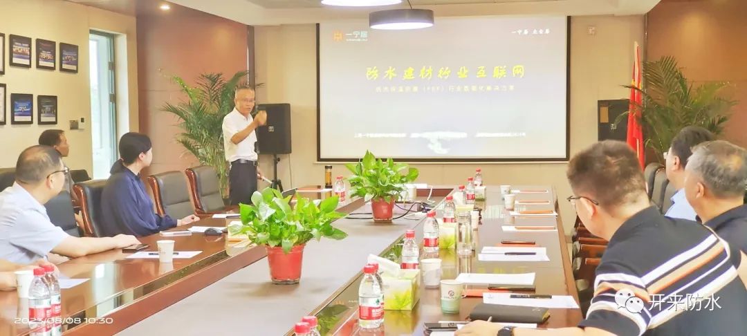 開來濕克威董事長倪貴全高工介紹了防水行業發展狀況,匯報了一寧居&開來聯合上市工作的推進情況,并詳細匯報了防水行業數字化樣板運營情況和防水產品質量溯源平臺開發進度。