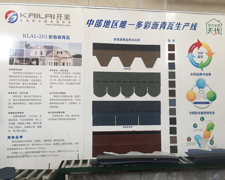 KLAI-201彩色瀝青瓦是以玻璃纖維氈為胎基,經(jīng)浸涂中石化優(yōu)質(zhì)石油瀝青后,一面覆蓋燒結(jié)彩色礦物粒料、另一面撒以隔離材料所制成的瓦狀屋面防水片材。公司擁有中部地區(qū)特有的彩色瀝青瓦生產(chǎn)線(xiàn),對(duì)外提供定制。采用在高溫下陶化而成的彩色燒潔砂,產(chǎn)品采用全背膠生產(chǎn)工藝。彌補(bǔ)了瀝青瓦抗風(fēng)性能差的缺點(diǎn),造型多樣,色彩豐富。
