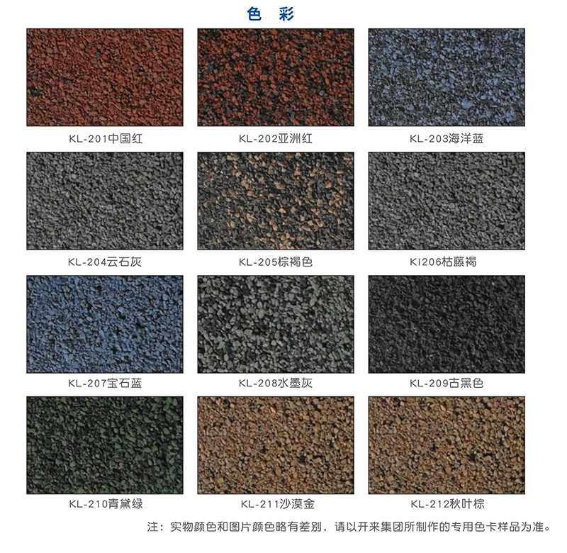 礦物粒料的顏色和粒度必須均勻緊密地覆蓋在彩色瀝青瓦的表面。